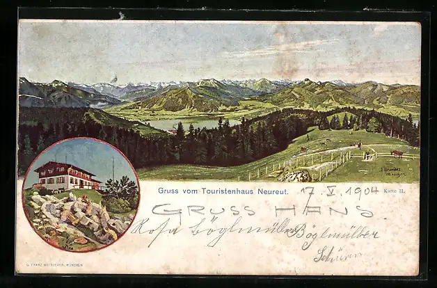 Lithographie Neureut, Panorama und Unterkunftshaus