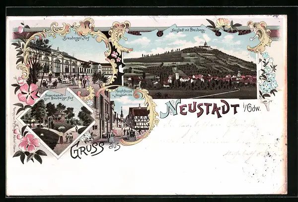 Lithographie Neustadt i. O., Totalansicht mit Bergwirtschaft