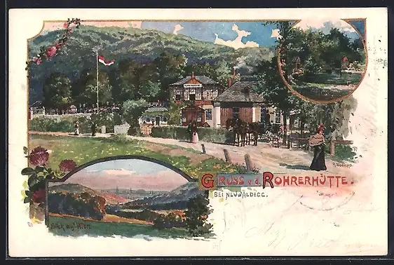 Lithographie Neuwaldegg, Rohrerhütte, Blick auf Wien