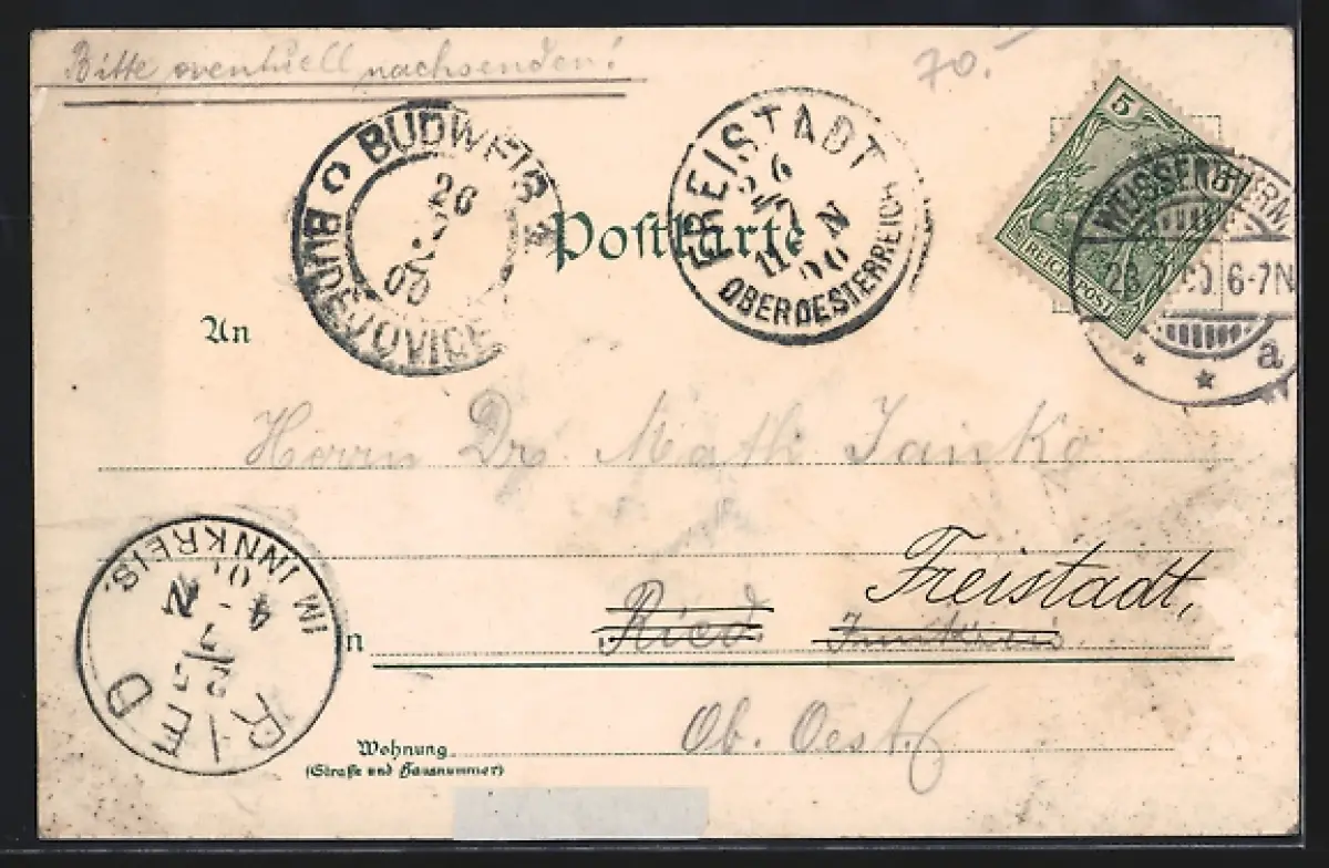 gelaufen 1900, rückseitig Oberflächenschaden, guter Zustand