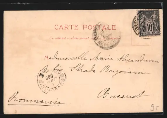 gelaufen 1900, vorderseitig Klebe- und Papierreste, guter Zustand