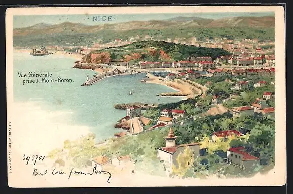 Lithographie Nice, Vue Gènèrale prise du Mont-Boron