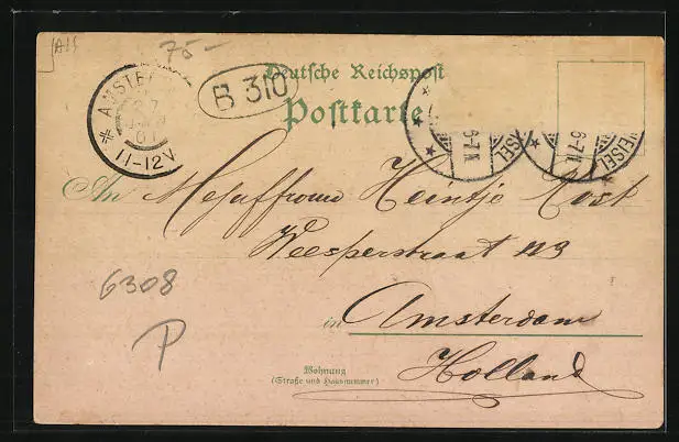 gelaufen 1901, Briefmarke entfernt, Eckknick li. oben, guter Zustand