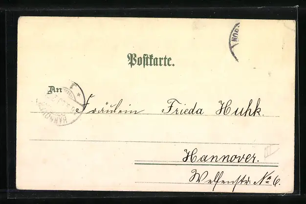 gelaufen 1900, Briefmarke entfernt, Eckknicke oben, Stempelspur, guter Zustand