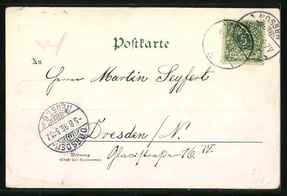 gelaufen 1896, Eckknick oben rechts, guter Zustand