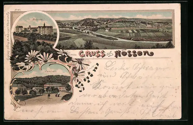 Lithographie Nossen, Teilansicht, Schloss, Seminar