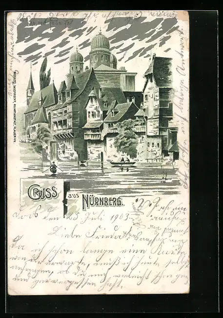 Lithographie Nürnberg, An der Pegnitz, Synagoge