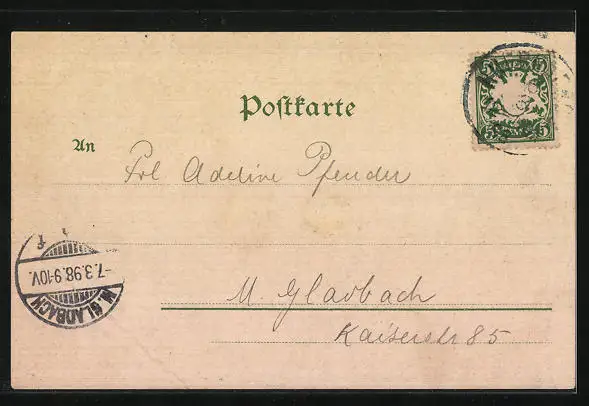 gelaufen 1898, Eckknick re. unten, guter Zustand