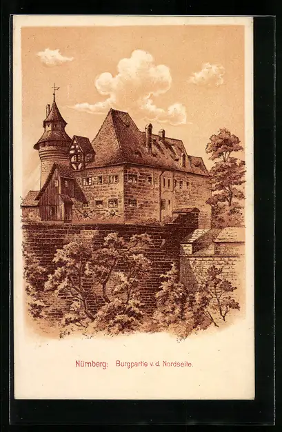 Lithographie Nürnberg, Burgpartie v. d. Nordseite