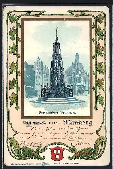 Lithographie Nürnberg, Der schöne Brunnen, Passepartout
