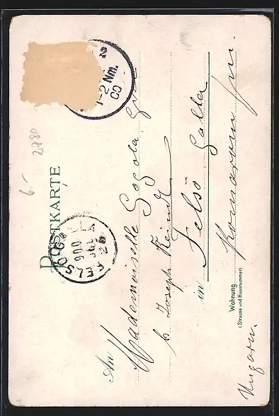 gelaufen 1900, Briefmarke entfernt, rückseitig Oberflächenschaden, guter Zustand