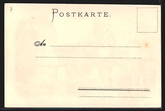 Personenbezogene Daten auf der Rückseite der Karte wurden durch blauen Textmarker unkenntlich gemacht. Die blauen Stellen sind auf die Vorderseite durchgeweicht und wirken sich negativ auf das Postkartenfoto aus