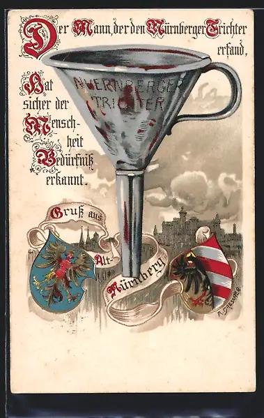 Lithographie Nürnberg, Nürnberger Trichter, Wappen