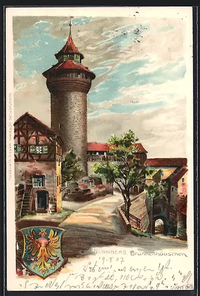Lithographie Nürnberg, Partie am Brunnenhäuschen