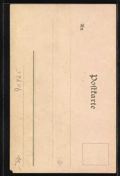 Personenbezogene Daten auf der Rückseite der Karte wurden durch blauen Textmarker unkenntlich gemacht. Die blauen Stellen sind auf die Vorderseite durchgeweicht und wirken sich negativ auf das Postkartenfoto aus