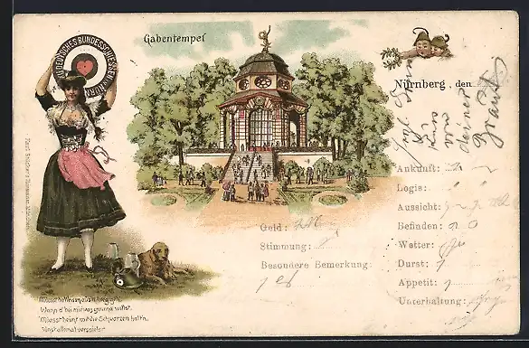 Lithographie Nürnberg, XII. Deutsches Bundesschiessen, Gabentempel