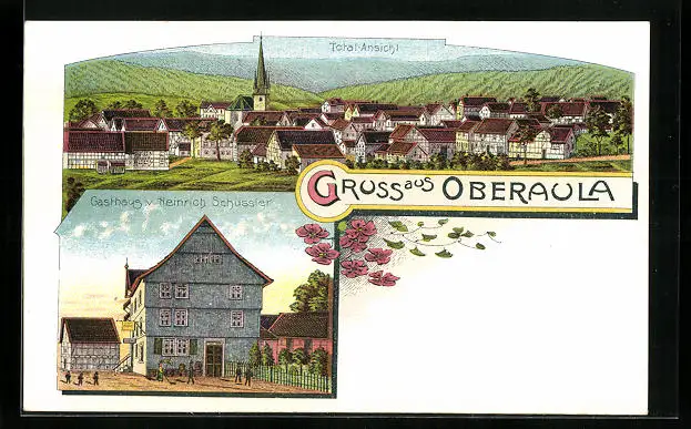 Lithographie Oberaula, Gasthaus von Heinrich Schüssler, Totalansicht
