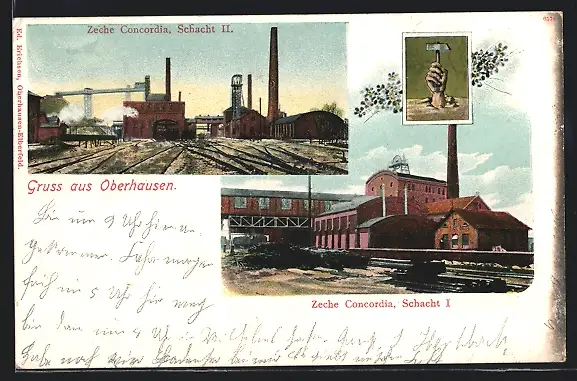 Lithographie Oberhausen, Zeche Concordia, Schacht II, Zeche Concordia, Schacht I, Kohle
