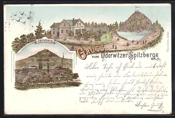 Lithographie Oderwitz, Gasthaus Spitzberge, Ortsansicht