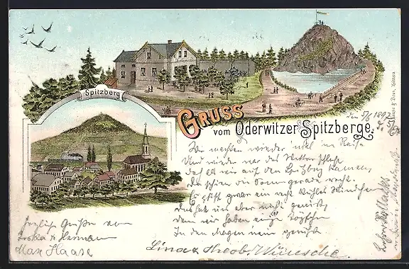 Lithographie Oderwitz, Gasthaus Spitzberge, Ortsansicht