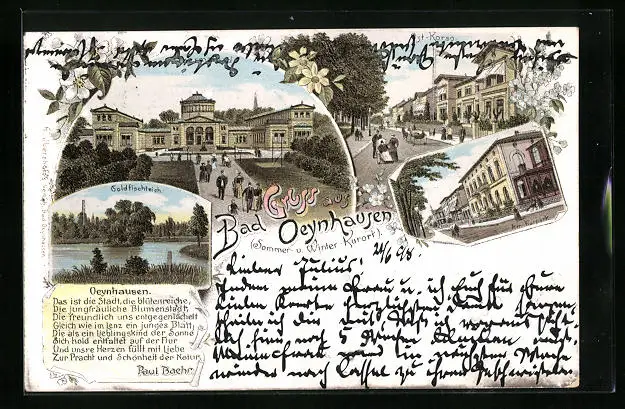Lithographie Oeynhausen, Ortsansicht mit Goldfischteich