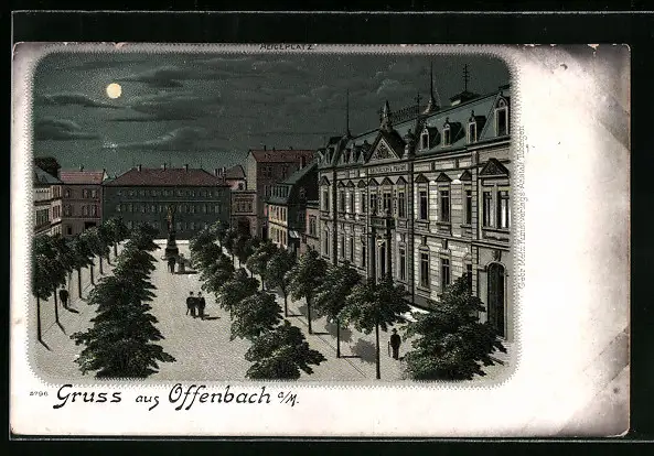 Lithographie Offenbach a. M., Partie am Aliceplatz