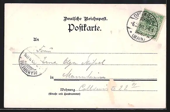 gelaufen 1900, rückseitig Klebe- und Papierreste, guter Zustand