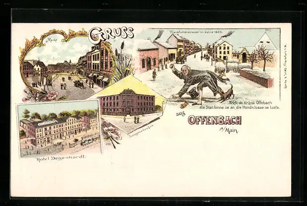 Lithographie Offenbach a. Main, Hotel Degenhardt, Markt, Frankfurterstrasse