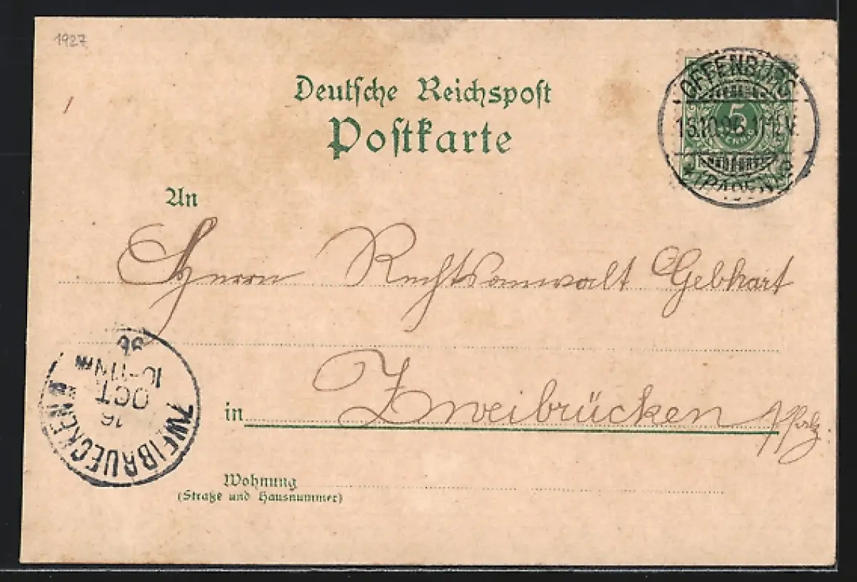 gelaufen 1896, Eckknicke li. oben, guter Zustand