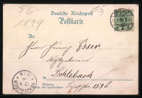 gelaufen 1899, Eckknick li. unten, guter Zustand
