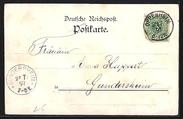 gelaufen 1897, Eckknick li. unten, guter Zustand