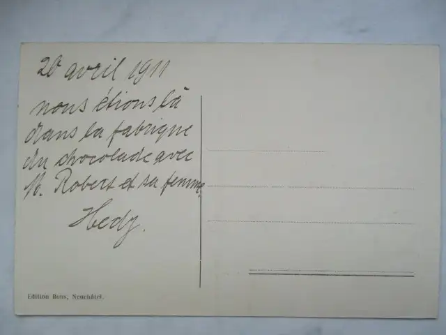 Motiv: Ortschaft, Bergpanorama, Wiese. Verlagsangaben: Neuchatel, Bous, dat. 1911, 55.