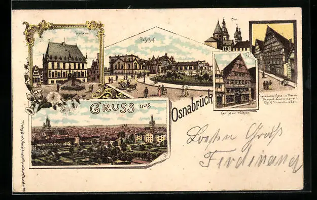 Lithographie Osnabrück, Bahnhof, Ortsansicht, Gasthof zur Walhalla