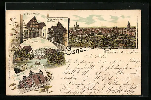 Lithographie Osnabrück, Totalansicht mit Gasthof z. Walhalla