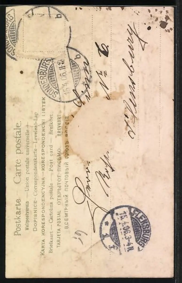 gelaufen 1906, Briefmarke entfernt, rückseitig Klebe- und Papierreste, beschnitten oben