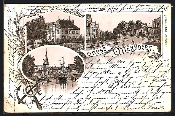Lithographie Otterndorf, Ortsansicht, Strassenpartie