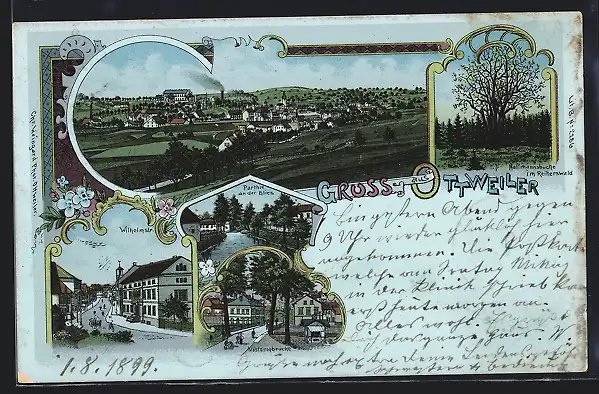 Lithographie Ottweiler, Partie an der Bries, Victoriabrücke, Wilhelmstrasse