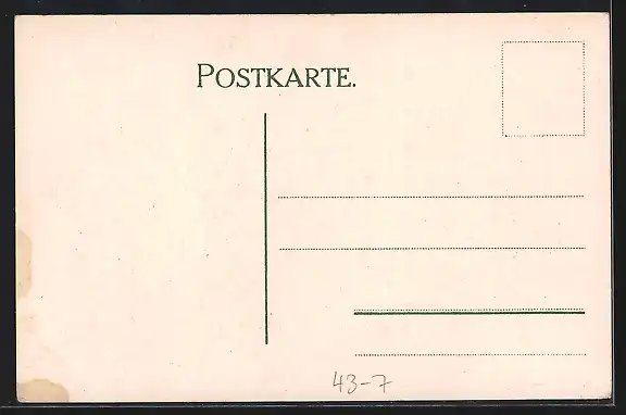 Personenbezogene Daten auf der Rückseite der Karte wurden durch blauen Textmarker unkenntlich gemacht. Die blauen Stellen sind auf die Vorderseite durchgeweicht und wirken sich negativ auf das Postkartenfoto aus
