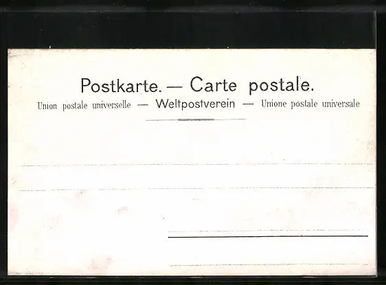 Personenbezogene Daten auf der Rückseite der Karte wurden durch blauen Textmarker unkenntlich gemacht. Die blauen Stellen sind auf die Vorderseite durchgeweicht und wirken sich negativ auf das Postkartenfoto aus