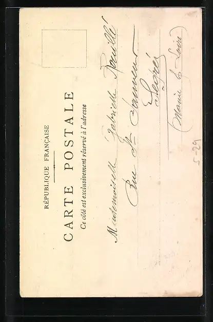 Personenbezogene Daten auf der Rückseite der Karte wurden durch blauen Textmarker unkenntlich gemacht. Die blauen Stellen sind auf die Vorderseite durchgeweicht und wirken sich negativ auf das Postkartenfoto aus