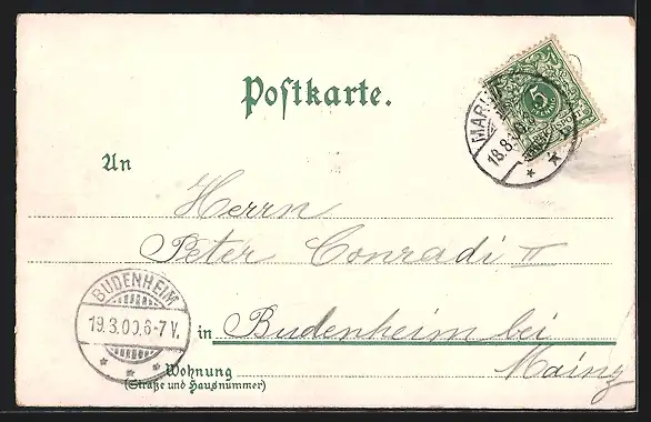 gelaufen 1900, Eckknick unten li., guter Zustand