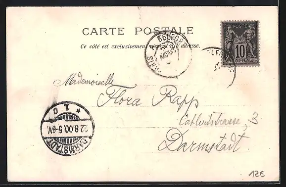 Personenbezogene Daten auf der Rückseite der Karte wurden durch blauen Textmarker unkenntlich gemacht. Die blauen Stellen sind auf die Vorderseite durchgeweicht und wirken sich negativ auf das Postkartenfoto aus