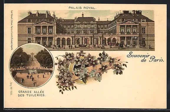 Lithographie Paris, Grande Allée des Tuileries, Palais Royal