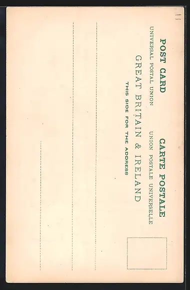 Personenbezogene Daten auf der Rückseite der Karte wurden durch blauen Textmarker unkenntlich gemacht. Die blauen Stellen sind auf die Vorderseite durchgeweicht und wirken sich negativ auf das Postkartenfoto aus