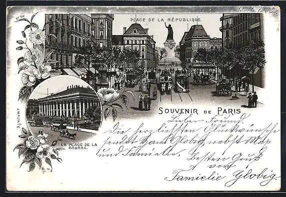 Lithographie Paris, Place de la République, La Place de la Bourse