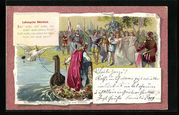 Lithographie Parsival, Lohengrins Abschied