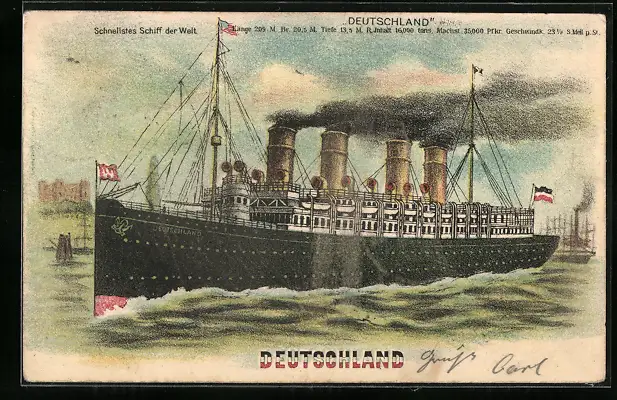 Lithographie Passagierschiff Deutschland in Fahrt