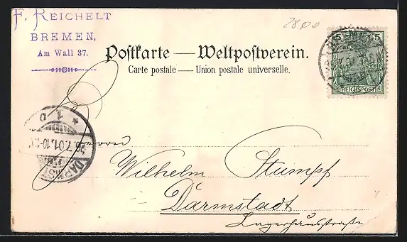 gelaufen 1901, Eckknick li. unten, guter Zustand