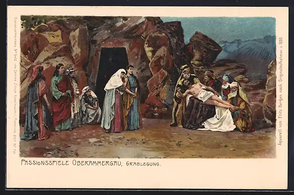 Lithographie Passionsspiele im Oberammergau, Grablegung Christi