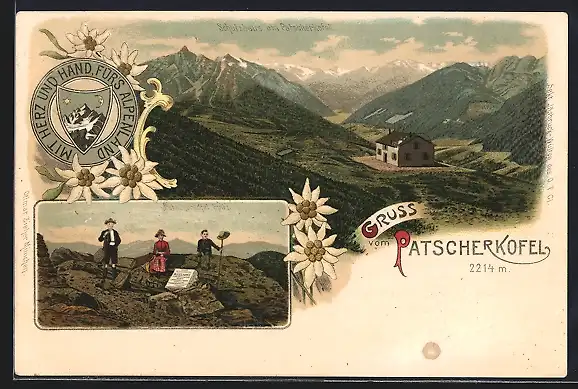 Lithographie Patscherkofel-Schutzhaus, pausierende Bergsteiger
